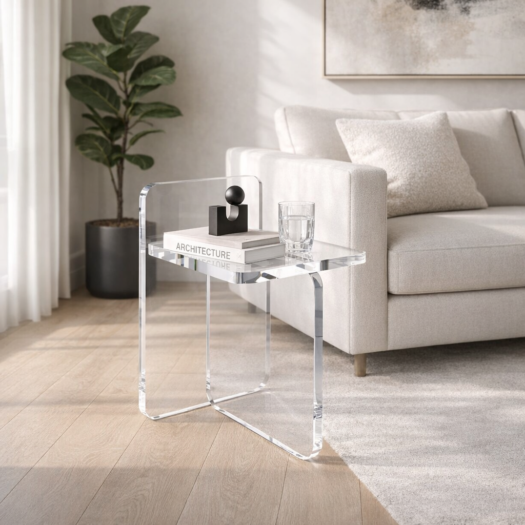 Crafted from premium acrylic, this side table delivers a clean, sculptural presence that complements a wide range of design styles without overpowering the space.