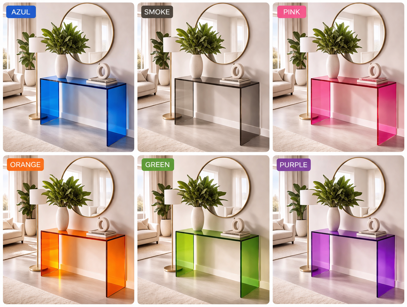 Designed for interiors that celebrate creativity and individuality, the ColorBurst Acrylic Console Table is ideal for entryways, living spaces, or modern environments seeking a statement piece with character.