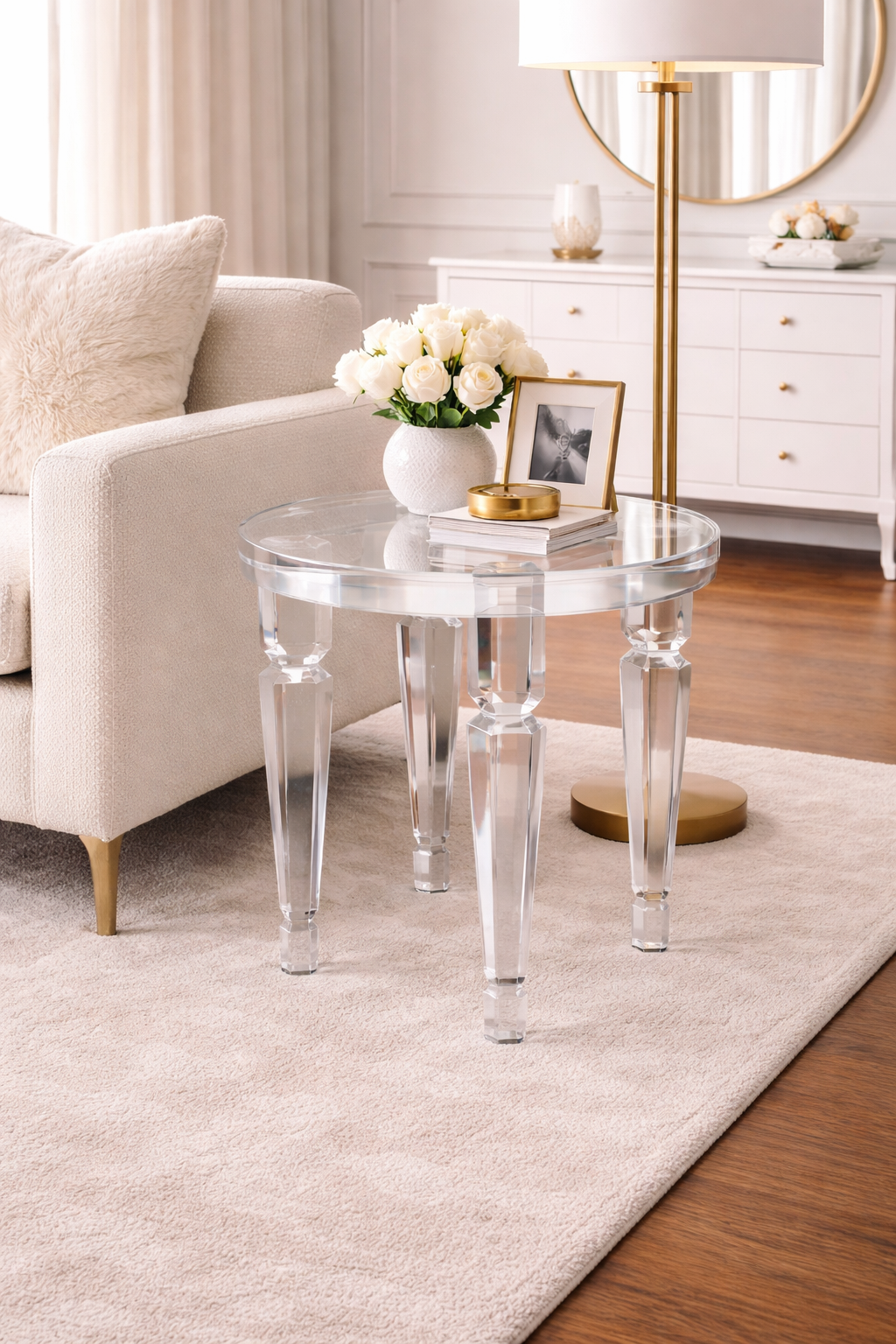 Elevate your space with the refined elegance of the Roma Acrylic Side Table. Crafted from high-quality, crystal-clear acrylic, this piece brings a light, modern aesthetic while maintaining a bold sculptural presence.